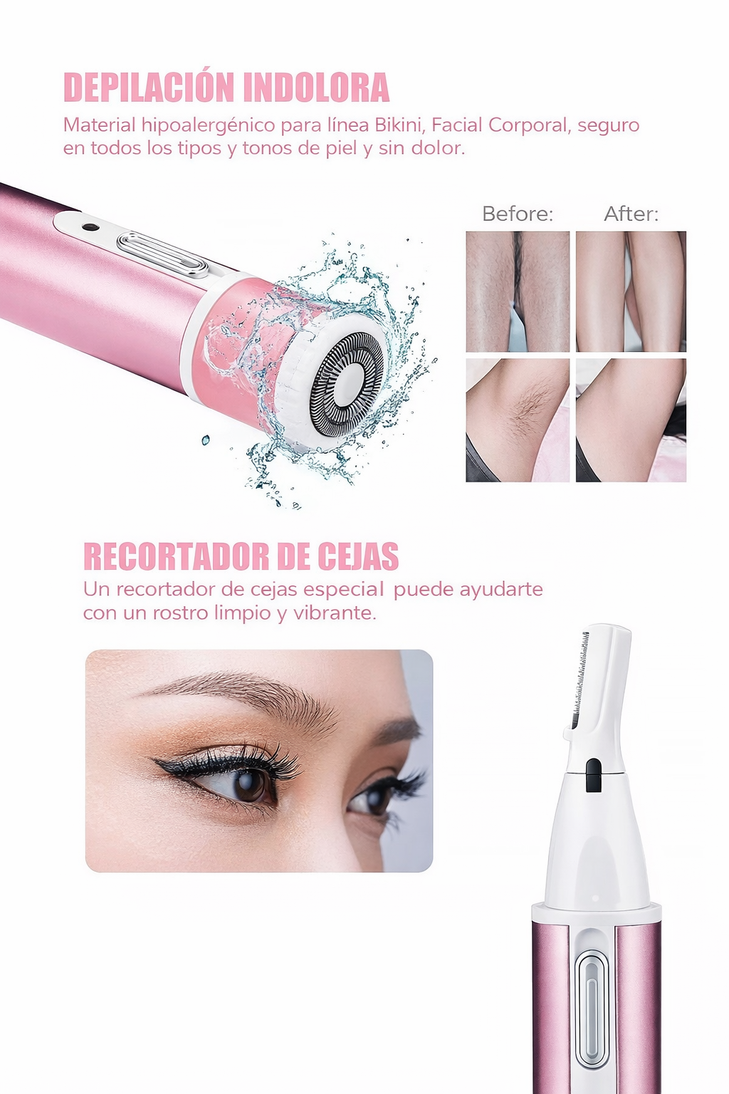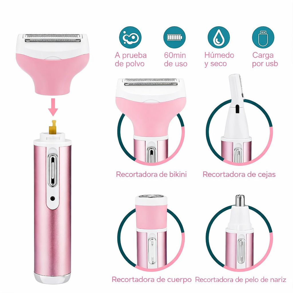 Nuestra Depiladora femenina 4 en 1, fue creada para mujeres que quieren verse bien rápido, sin dolor y desde casa.